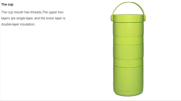 1090ml/37OZ single / double wall insulated 3 layer lunch box with handle lid F009
