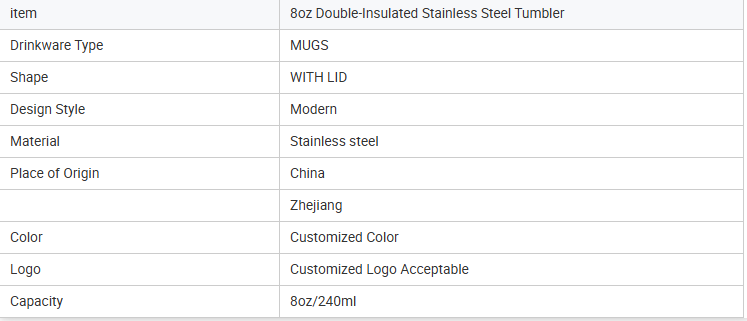 The 8OZ coffee cup is made of 304 inner and outer materials. There are currently three types of lids, and a bottom pad can be customized to prevent bottom wear.
