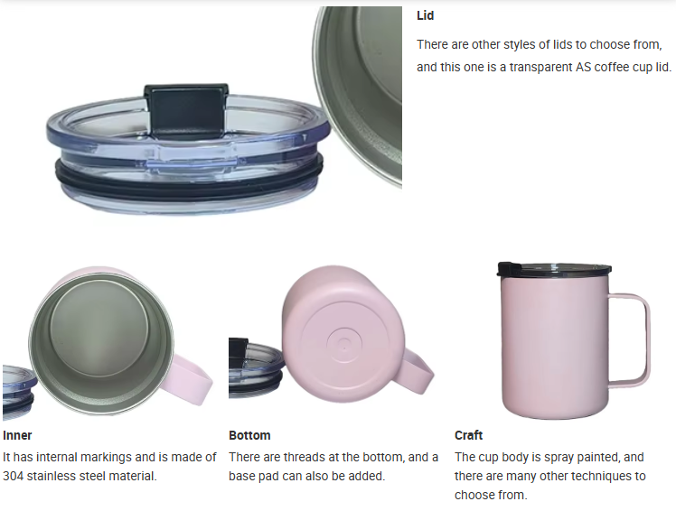 White insulated 12OZ sublimation coffee cup with lid and handle, stainless steel insulated travel cup gift. The lid comes in various styles, and the cup can be customized with craftsmanship, providing sample support.