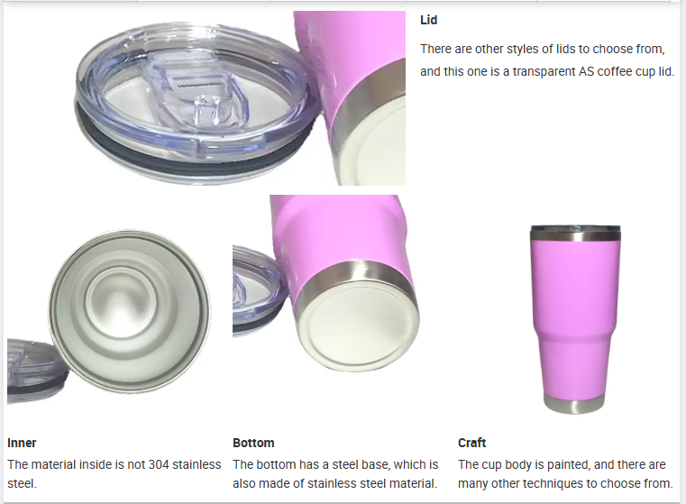 The capacity size is 30OZ, with a lid and straw, a mouth on the top, and a steel bottom at the bottom.